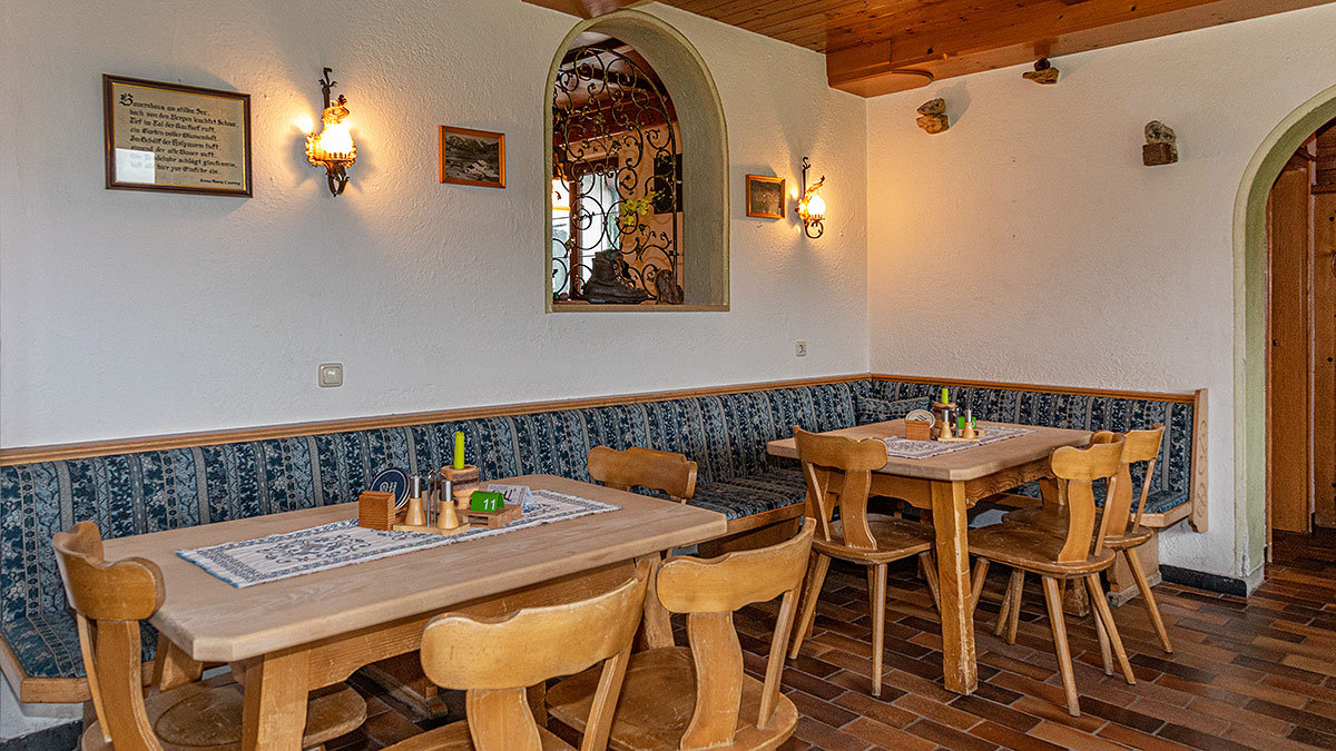 Unsere Gäste schätzen außer dem guten Essen die Gemütlichkeit unserer kleinen Terrasse und genießen die Ruhe rund um den Gasthof fernab vom Massentourismus. Liegestühle stehen zum Relaxen und Sonnenbaden zur Verfügung. In der kalten Jahreszeit lädt die Gaststube mit Kachelofen zum Verweilen ein.